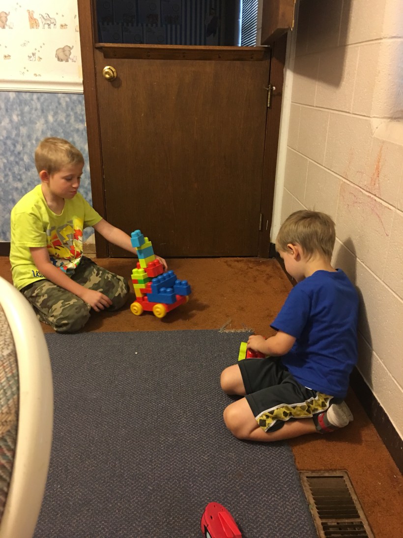 Getting on another point I have noticed that the same behavior comes out when we have visitors.  They can’t just sit quietly or play calmly, nope, that would be too easy.  It’s like they have this initial embedded beacon that goes off when mommy is doing something or visiting with someone.  It is quite humorous in a way.